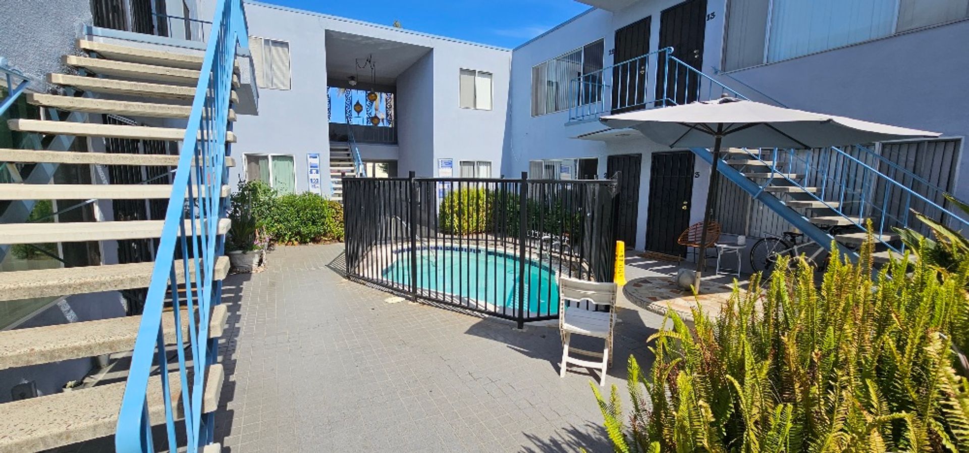 Extra-large, clean, comfortable secure, gated upstairs one bed, one bath in desirable University Heights area. Unit features an over-sized living area, ceiling fans, large kitchen peninsula and an open living feel. Bedroom and shower have a privacy door for a bedroom suite floor plan feel. Bathroom tub /shower includes glass doors for a more upscale bathroom experience. Property also features a small wading pool for the hot days, on-site laundry, and one off-street parking space. Centrally located and walking distance to all Hillcrest has to offer. For more information, please call 619-865-3992.
