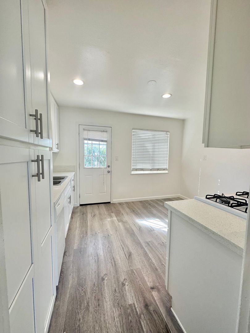 This home offers tons of natural light and space! Large kitchen with Plenty of cabinetry Refrigerator, stove, dishwasher. Microwave. There is a Full size Washer and Dryer! Also feature back yard area, shared garage included. Small Pets Welcome!