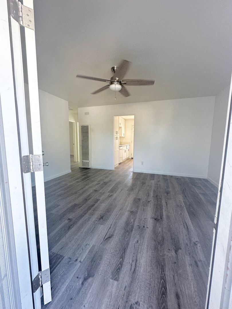 Totally remodeled 2 bedroom 1 bath duplex home beautiful flooring, newer cabinets, ceiling fans, and AC.