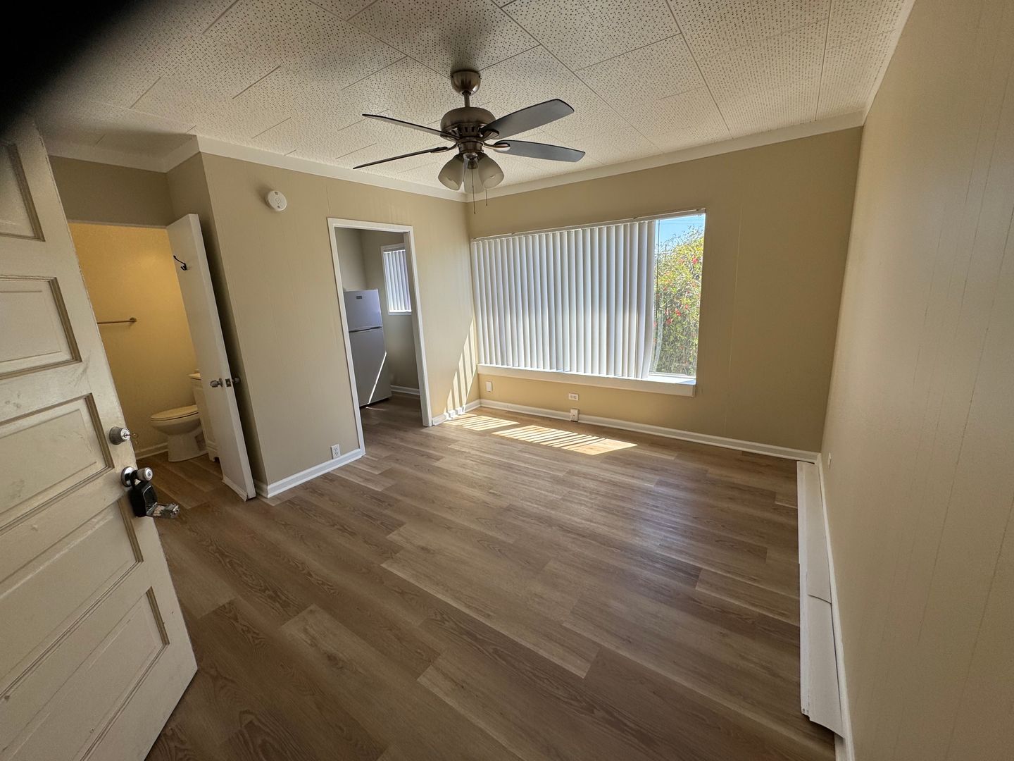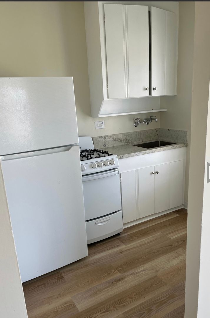 Charming Renovated Upstairs Studio, with brand new luxury vinyl plank flooring through-out, new lighting fixtures, remodeled kitchenette with quartz counter top, new sink, newer appliances, and perfect sized cabinet space. Full bath features brand new vanity and lighting, two separate closets with tons of space and additional linen closet. This cozy and charming studio is in the heart of National City and centrally located in South Bay San Diego. Walking distance to tons of shopping and dining, super easy freeway access to 5/805/54, 5 minute drive to Downtown SD & the beach! Sorry NO PETS! Street Parking Only, No laundry on-site.