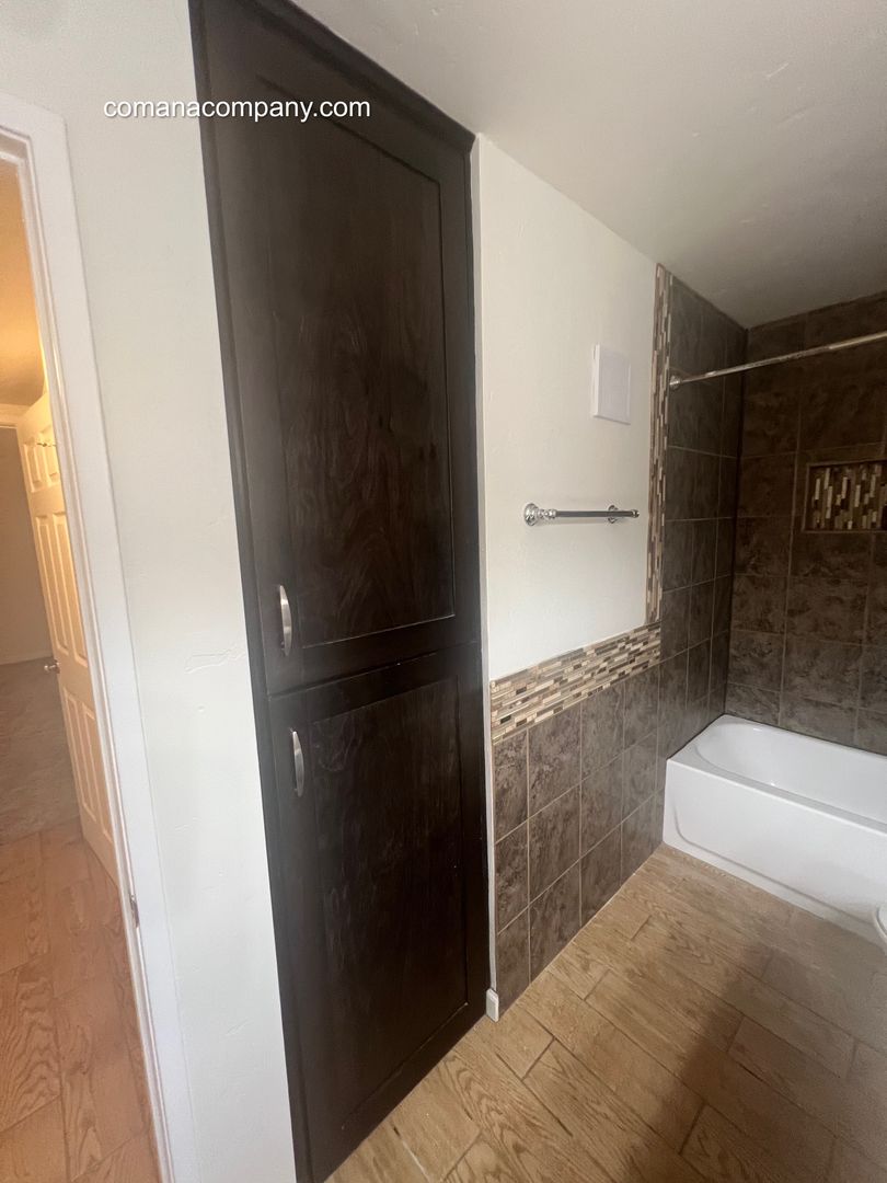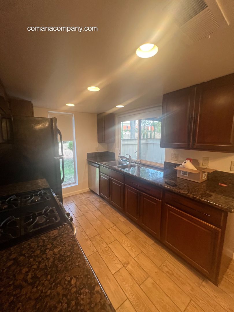 **Special Offer for half off first months rent** Come see this 2 bedroom 1 bath located in Del Cerro. This is a bottom floor unit right off Navajo. Hard flooring in kitchen, living and dining room. It has a good size fenced in patio with a lockable storage closet. Gas stove, dishwasher and built in microwave. Both bedrooms have nice new carpet and sizable closets. One has a walk in closet. It comes with two parking spaces. Nice sized bathroom with double sink vanity. The community has a pool, clubhouse, jacuzzi and BBQ picnic common area. Water, trash and sewer included in rent. Laundry room with plenty of cashless machines. Near Cowles Mountain and Mission Trails hiking patch. One block from Keil’s Grocery and shopping center. Patrick Henry High and Lake Murray nearby. NO Pets. Please contact me if you’d like to schedule a viewing carla@comanacompany.com